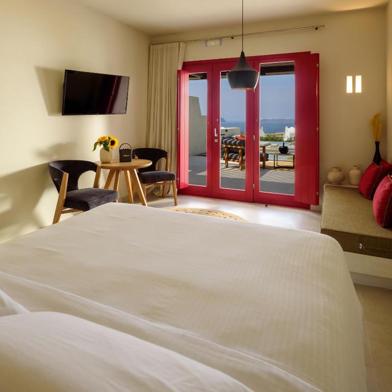 Cazare elegantă: Potnia Theron Suites din Akrotiri oferă cazare cu mic dejun exclusiv pentru adulți, cu terasă la soare, grădină și WiFi gratuit. Oaspeții beneficiază de check-in și check-out privat, serviciu de transfer cu plată și birou de turism.