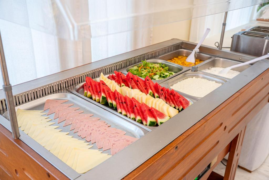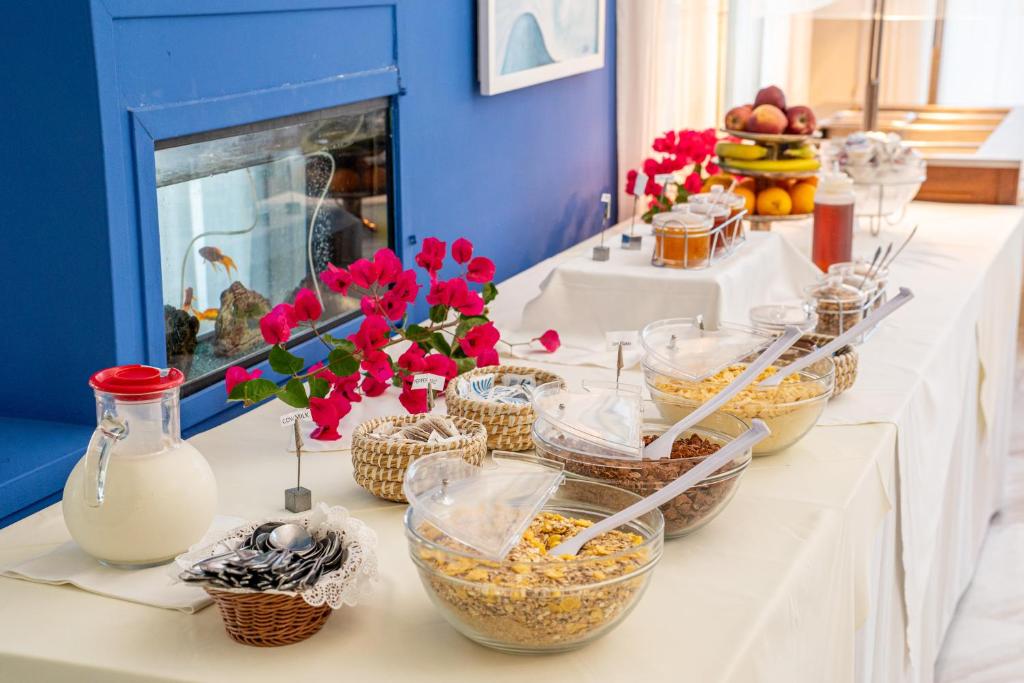In fiecare zi puteti savura un mic dejun tip bufet cu produse de panificatie de casă, iaurt grecesc si alte delicatese locale. Barul-restaurant de langă piscină asigură preparate din bucătăria mediteraneană si cocktailuri.