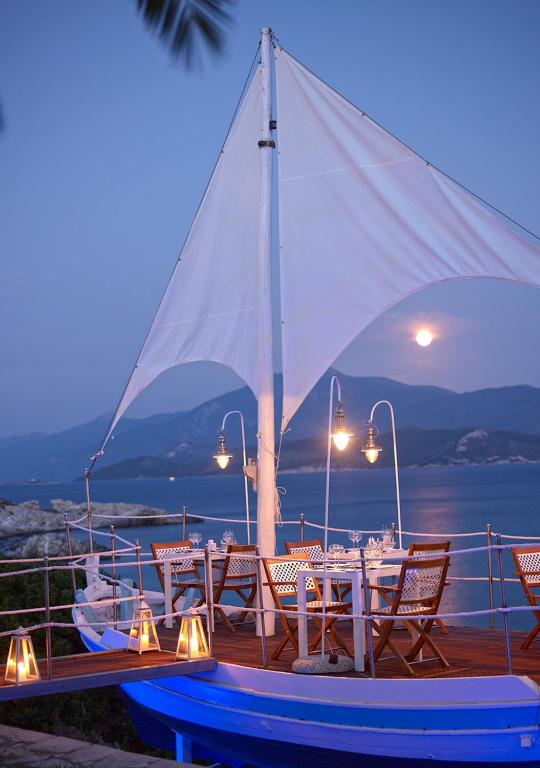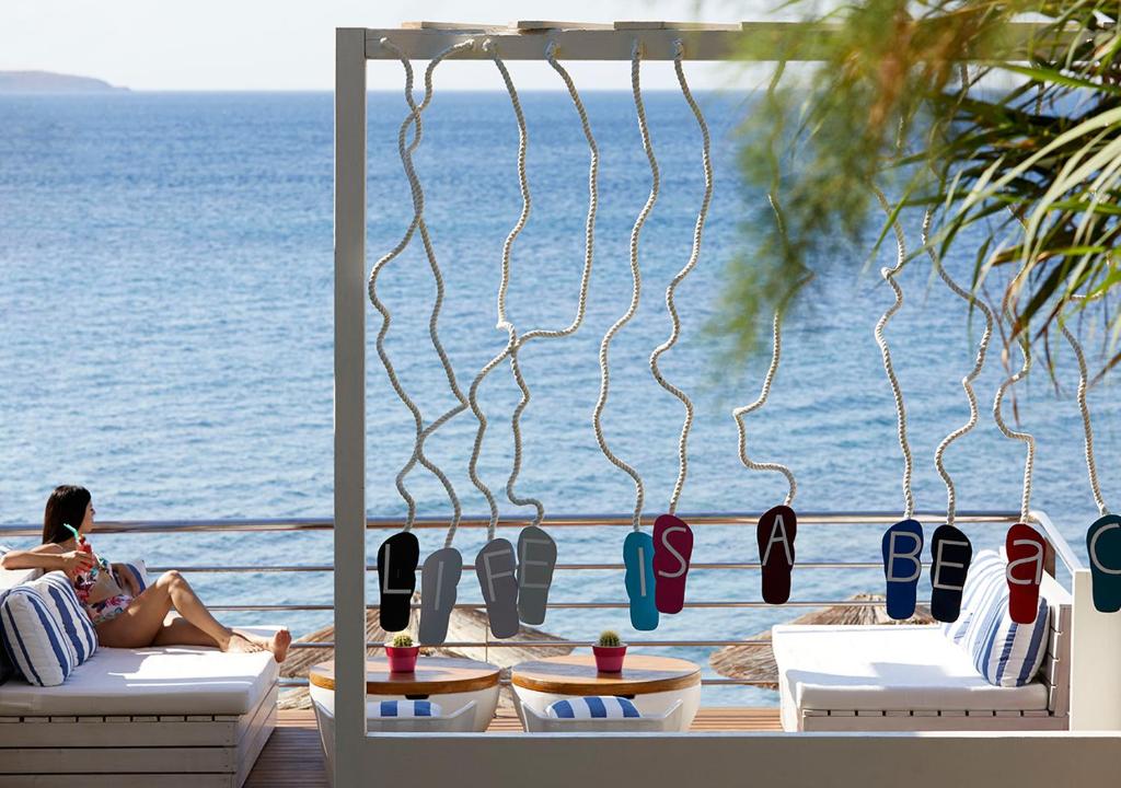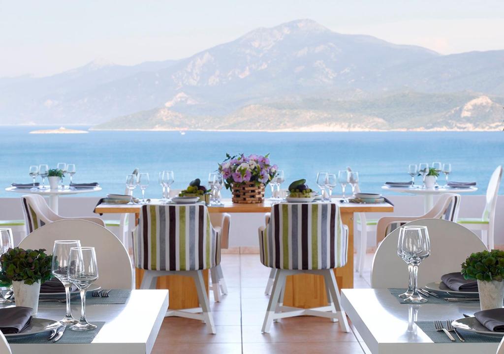Restaurantul Simplicity se află pe marginea piscinei si serveste mancăruri grecești à la carte, iar mese tip bufet sunt oferite la restaurantul Panorama. De asemenea, există un bar langă piscină și un club pe plajă. Restaurantul gourmet Π2 Theory este in aer liber și servește mancăruri internaționale, preparate cu fler. De asemenea, are vedere la Marea Mediterană.