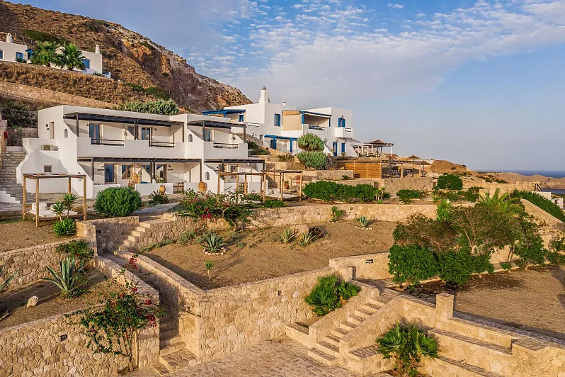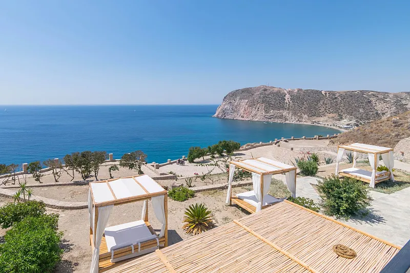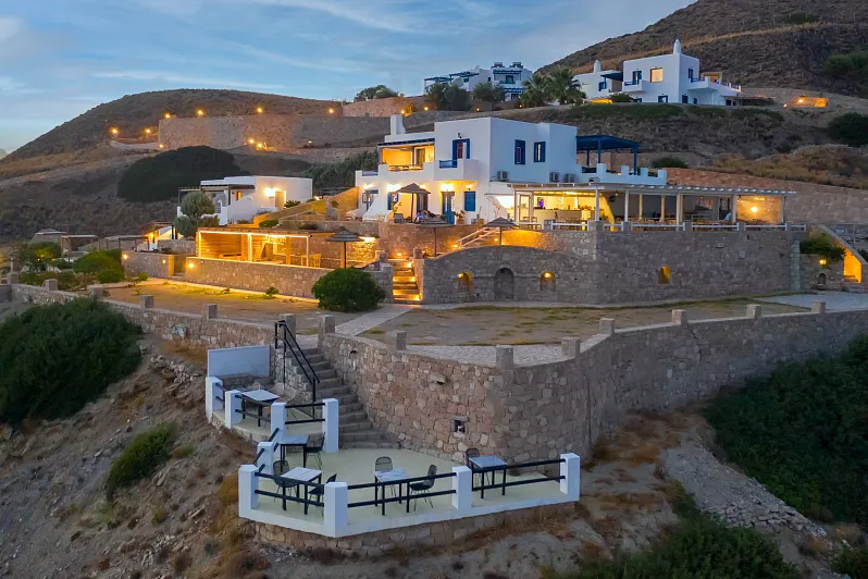 Psaravolada Resort is located on the south side of Milos, very close to Aghia Kyriaki beach which is one of the best sandy beaches of the island and just on top of the magnificent beach of Psaravolada from which the hotel owes its name. Covering a panoramic area of approximately 30,000m2 Psaravolada Resort is created, with love and respect to the environment.