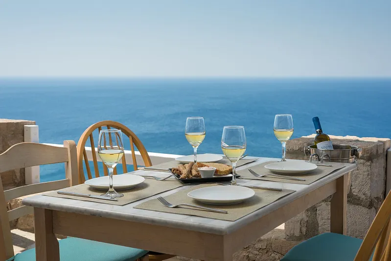 In this dreamy resort indulge yourself in the most mouth-watering culinary journeys at our Psaravolada Restaurant. All guests and visitors are welcome to explore the authentic world of gastronomy at this eclectic restaurant with breathtaking views, enjoying flavors and aromas of traditional and international cuisine.