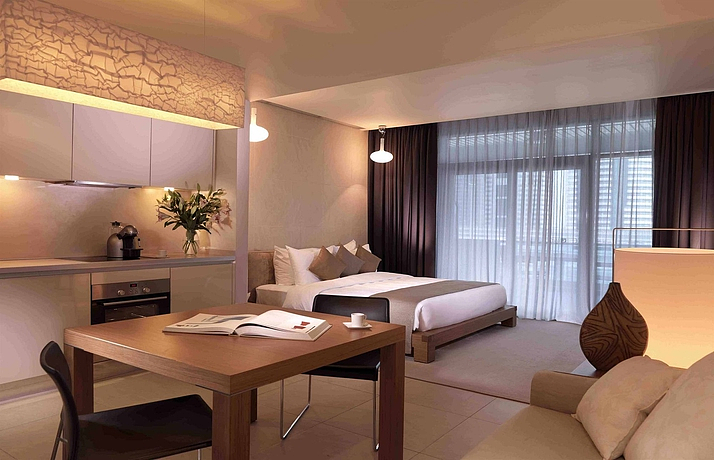 HOTEL: Este aparthotel con sistema climatizado, cuenta con 152 apartamentos, un vestíbulo con recepción, servicio de salida, servicio de cambio de moneda, ascensor, una cafetería, un restaurante y wifi sin cargo extra. También ofrece servicio de habitaciones, servicio de lavandería de pago directo y parking. SITUACIÓN: Este hotel está situado en el corazón de Dubái Marina. En las cercanías del establecimiento los clientes encontrarán la playa de Jumeirah. En las cercanías los clientes disponen de zonas turísticas. También puede encontrar restaurantes y centros comerciales. A 35 kilómetros está situado el aeropuerto de Dubai. HABITACIÓN: Está formado por apartamentos con cocina, platos, cubertería, minibar, nevera y hornillos. Cuentan con cafetera, tetera, cuarto de baño con ducha, una bañera, secador de pelo, cama extra grande, caja de seguridad, televisión de pantalla plana por cable, conexión a internet y teléfono de línea directa. Además tienen aire acondicionado, balcón, set de plancha, un escritorio y lavadora. INSTALACIONES: Los clientes tienen a su disposición 2 piscinas, una piscina cubierta y un spa. También puede encontrar 2 gimnasios, una piscina de niños, una sauna y el servicio de masajes mediante un abono extra. Cerca del establecimiento se sitúa un campo de golf. COMIDAS: Se ofrece a los huéspedes servicio de desayuno,almuerzo y cena y servicio de habitaciones.