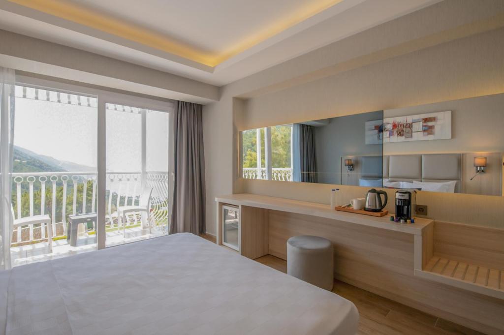 Situat in Oludeniz, la 11 km de portul de agrement Ece Saray, Ramada by Wyndham Fethiye Oludeniz oferă cazare cu piscină sezonieră in aer liber, parcare privată gratuită, grădină și zonă de plajă privată. Proprietatea are un restaurant, un bar, o saună și un hamam. Proprietatea oferă room service, o recepție deschisă nonstop și schimb valutar pentru oaspeți. Camerele hotelului sunt dotate cu aer condiționat și includ o zonă de relaxare, un TV cu canale prin satelit, o cutie de valori și o baie privată cu duș, articole de toaletă gratuite și uscător de păr. Ramada by Wyndham Fethiye Oludeniz oferă anumite camere cu vedere la mare, iar toate camerele au balcon. Toate unitățile au dulap. Puteți juca tenis de masă și darts la proprietate, iar bicicletele sunt inchiriate. Fethiye Marina se află la 11,2 km de Ramada by Wyndham Fethiye Oludeniz, iar Butterfly Valley este la 12,8 km. Aeroportul Dalaman este la 65 km, iar proprietatea oferă un serviciu de transfer la acest aeroport, la un cost suplimentar.