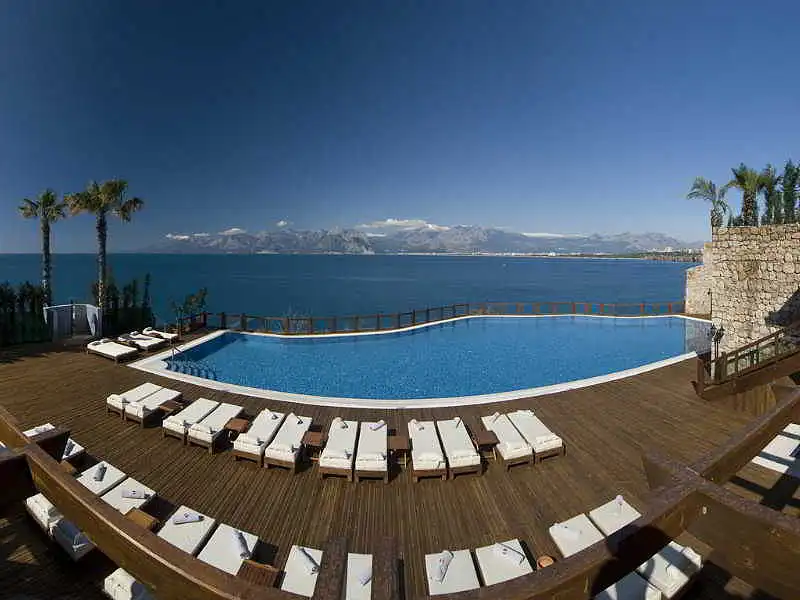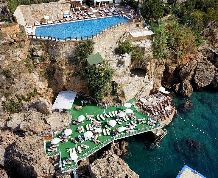 This beautiful hotel is situated, just by the shore, on top of Antalyas most renowned cliff and offers its guests magnificent views of the bay and of the Taurus Mountains. It is very close to the main historical sites such as Inner Baileys and Hadirans Gate. Public transport connections and taxi service are to be found in the near vicinity. Antalya Airport is around 15 km away.