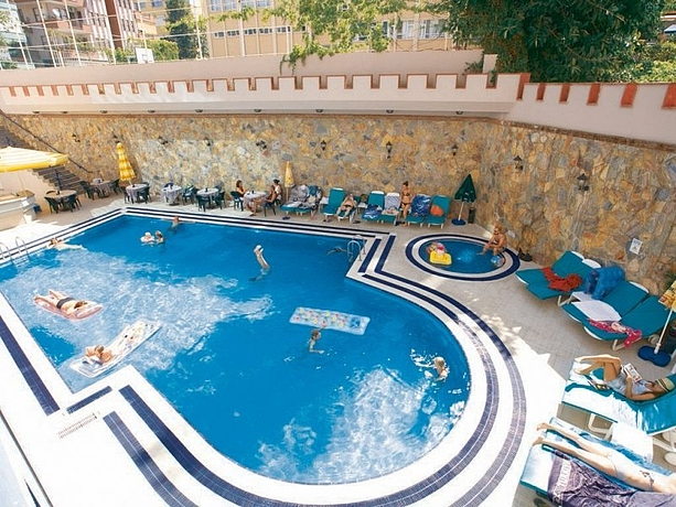 HOTEL: Este hotel urbano y moderno, contemporáneo, cuenta con 59 habitaciones, un vestíbulo con recepción, servicio de salida, sistema de aire acondicionado, caja de seguridad, servicio de cambio de moneda, peluquería, un salón donde podrá ver la televisión y parking. Bajo cargo encontrará wifi, servicio de habitaciones y servicio de lavandería. Con referencia a la gastronomía puede disfrutar de un restaurante. SITUACIÓN: El hotel, está en el centro de Alanya. A 130 kilómetros está situado el aeropuerto de Antalya. En las cercanías del establecimiento los clientes encontrarán la zona turística. También puede encontrar mercados, tiendas, restaurantes, bares y playas. A 15 minutos hay una estación de autobuses. HABITACIÓN: Está formado por 60 habitaciones con televisión vía satélite, aire acondicionado, teléfono, cuarto de baño con ducha, secador de pelo, cama doble, caja de seguridad, nevera y balcón o terraza. INSTALACIONES: Los clientes tienen a su disposición una piscina con una parte para los niños, un bar al aire libre, tumbonas y sombrillas. El cliente disfrutará de una sauna y jugar al ping pong. Se ofrece a los huéspedes un programa de ocio y entretenimiento. COMIDAS: Se ofrece todas las comidas tipo buffet. MÉTODOS DE PAGO: Se acepta Mastercard y Visa.