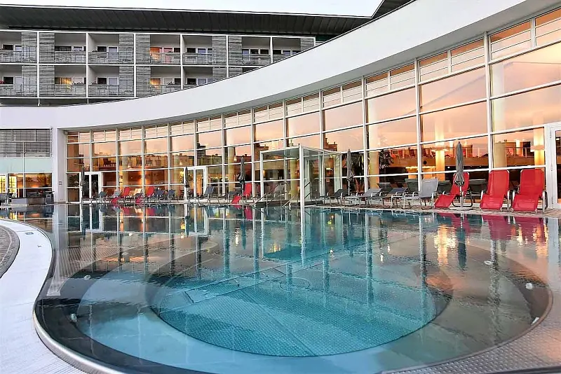 Holiday fun in southern Burgenland, where the sun is at home. Where the three natural remedies donate health so that you can enjoy the beautiful life even more intensely. The REDUCE HOTEL VITAL****S Bad Tatzmannsdorf is the ideal place for health and well-being. Immerse yourself in the hotel's own thermal, sauna and sensory world and look forward to many special features in the REDUCE. 2,000m² thermal baths, sauna and sensory world including a block sauna at the biotope. Bathing fun regardless of the weather: spacious thermal pools (inside and outside), sunny and shady areas at the outdoor pool, whirlpool, different sauna variations, sensual relaxation in the sound realm, scent realm, feel realm, taste realm, sight realm and much more.