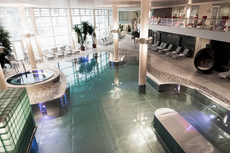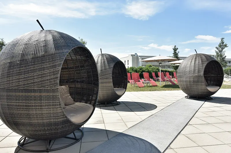 size wellness area 2000 m², spa area - free of charge, steam bath, sauna, finish sauna, bio sauna, thermal water pool, infrared cabin, whirlpool - free of charge, tepidarium, relax room, solarium - free of charge, garden, lawn, deck chair - free of charge, sun umbrellas - free of charge