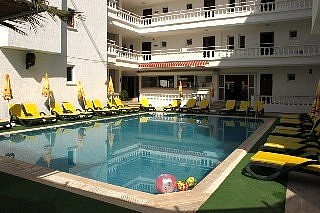 HOTEL: Este establecimiento es ideal para unas vacaciones en familia. Los clientes disponen de un vestíbulo con recepción, caja de seguridad, cambio de divisa, un bar, un comedor, una cafetería, un restaurante a la carta con climatización con área de no fumadores. SITUACIÓN: A 300 metros puede encontrar la playa. A 3 kilómetros está situado Alanya, puede disponer a 135 km del aeropuerto de Antalya. MÉTODOS DE PAGO: Se admite Visa y Mastercard.