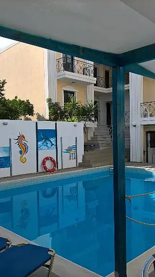Renia Hotel Apartments is situated in the center of the village of Agia Pelagia. The sandy beach is just 2 minutes walk away, as well the shops and the restaurants. An off site car parking is available at the hotel. Guests can enjoy a breakfast buffet at the hotel restaurant. Room Facilities Renia Hotel Apartments. All rooms have a hairdryer, tv, air-condition, kitchenette and balcony. Smoking is not allowed in the rooms, but it is allowed on the balcony, as well as in public areas of the hotel. Wifi internet access is available free of charge. Tea and coffee making facilities are available in every room, which also feature a refrigerator. Leisure Info. Leisure facilities are available at the Renia Hotel Apartments. The hotel has an outdoor swimming pool. Adventurous guests can choose from activities including mountain biking with our mountain bike hire, fishing, horse riding and sailing. Other Info. The hotel offers an airport shuttle service. Pets are not allowed in the hotel. Hotel guests can make use of the concierge service that is provided. The reception is open from 8:00 till 23:30. Please specify the time of your arrival.Guests can rent a car with a very low price at the reception. Or order by mail or telephone.Excursions also are available to book at the reception. Please contact us for your requests.