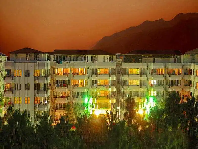 The complex surrounds a spacious swimming pool and bar area where couples and families can spend their day enjoying the sunshine. With a total of 108 guest rooms on offer, the air-conditioned residence welcomes guests in a lobby with 24-hour reception and check-out service, hotel safe, currency exchange facilities, cloakroom and lift access. Further facilities available to guests include a hairdressing salon, games room, TV lounge, kids club and restaurant. Guests may additionally take advantage of the room and laundry services, whilst those arriving by car may leave their vehicle in the car park.