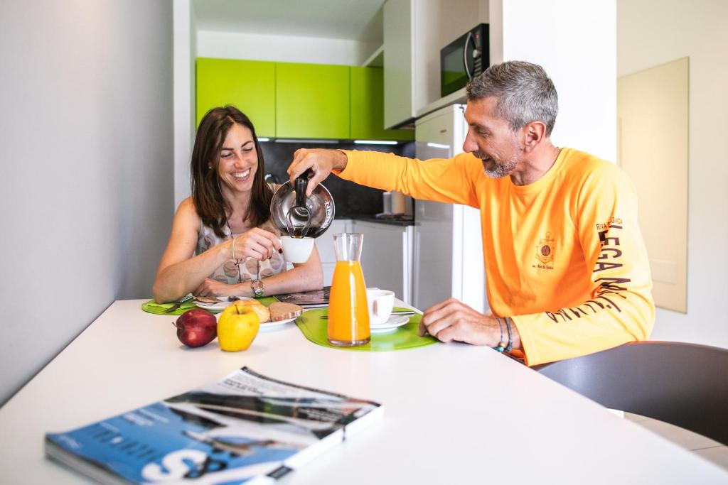 Băuturile sunt disponibile la bar, iar restaurantul servește preparate din bucătăria tradițională italiană. Oaspeții beneficiază de reduceri la școlile locale de surf și navigație.