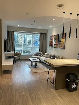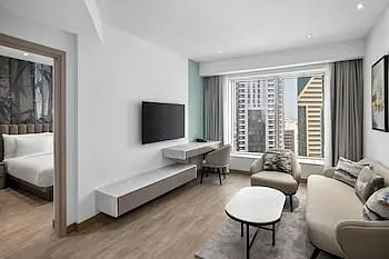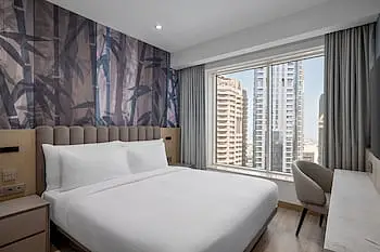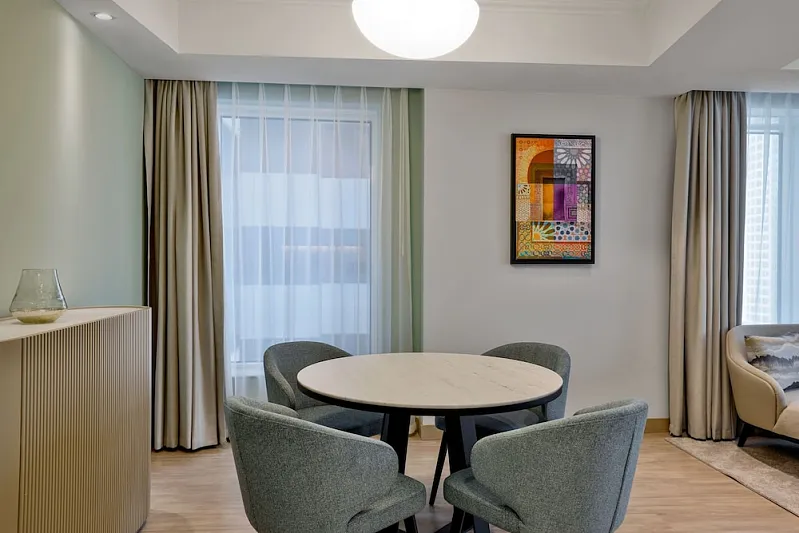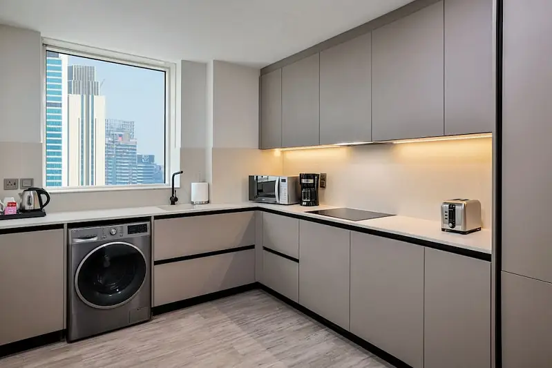<strong>Property Location</strong><p>A stay at Residence Inn by Marriott Sheikh Zayed Road places you in the heart of Dubai, within a 5-minute drive of Museum of the Future and Dubai World Trade Centre. This spa hotel is 2.3 mi (3.7 km) from Dubai Aquarium & Underwater Zoo and 2.6 mi (4.1 km) from Dubai Mall.<br> Distances are displayed to the nearest 0.1 mile and kilometer. <br /> <p>Museum of the Future - 1.4 km / 0.9 mi <br /> Dubai Aquarium & Underwater Zoo - 1.6 km / 1 mi <br /> Dubai Ice Rink - 1.8 km / 1.1 mi <br /> Dubai Mall - 1.8 km / 1.1 mi <br /> Burj Khalifa - 1.9 km / 1.2 mi <br /> City Walk - 2 km / 1.2 mi <br /> Emaar Square - 2 km / 1.3 mi <br /> KidZania - 2.2 km / 1.4 mi <br /> Dubai Opera - 2.3 km / 1.4 mi <br /> Dubai Fountain - 2.6 km / 1.6 mi <br /> Dubai World Trade Centre - 2.7 km / 1.7 mi <br /> Souk al Bahar - 2.8 km / 1.8 mi <br /> Coca-Cola Arena - 2.9 km / 1.8 mi <br /> Dubai International Convention and Exhibition Centre - 3.1 km / 1.9 mi <br /> Dubai Water Canal - 3.3 km / 2.1 mi <br /> </p><p>The nearest airports are:<br />Dubai Intl. Airport (DXB) - 12.2 km / 7.6 mi<br /> Sharjah (SHJ-Sharjah Intl.) - 39.6 km / 24.6 mi<br /> Al Maktoum Intl. Airport (DWC) - 63.8 km / 39.6 mi<br /> </p><p></p><br> <strong>Rooms</strong><p>Make yourself at home in one of the 430 air-conditioned rooms featuring kitchens with full-sized refrigerators/freezers and ovens. Your Select Comfort bed comes with down comforters and premium bedding. Flat-screen televisions with cable programming provide entertainment, while complimentary wireless internet access keeps you connected. Conveniences include phones, as well as safes and desks.<p> <strong>Dining</strong><p>Grab a bite at Lobby Lounge, one of the hotel's 2 restaurants, or stay in and take advantage of the 24-hour room service. Snacks are also available at the 2 coffee shops/cafes. Continental breakfasts are available daily from 7:00 AM to 10:00 AM for a fee.<p> <strong>Business, Other Amenities</strong> <p>Featured amenities include wired internet access (surcharge), a business center, and complimentary newspapers in the lobby. This hotel has 6 meeting rooms available for events. A roundtrip airport shuttle is provided for a surcharge (available 24 hours), and free valet parking is available onsite.<p>