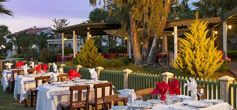 Restaurantul principal Efes, care este deschis intre orele 07-01, restaurantul specializat pescaresc Artemis, restaurantele a la carte cu specific turcesc si italienesc, cafeneaua, barul, barul la piscina si crama, deschisa intre orele 9 -23 le stau la dispozitia turistilor pentru a-i delecta cu preparate culinare delicioase si bauturi fine.