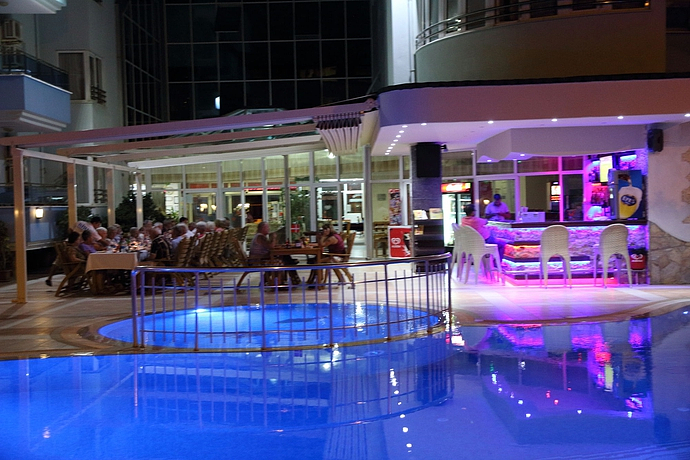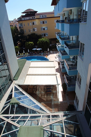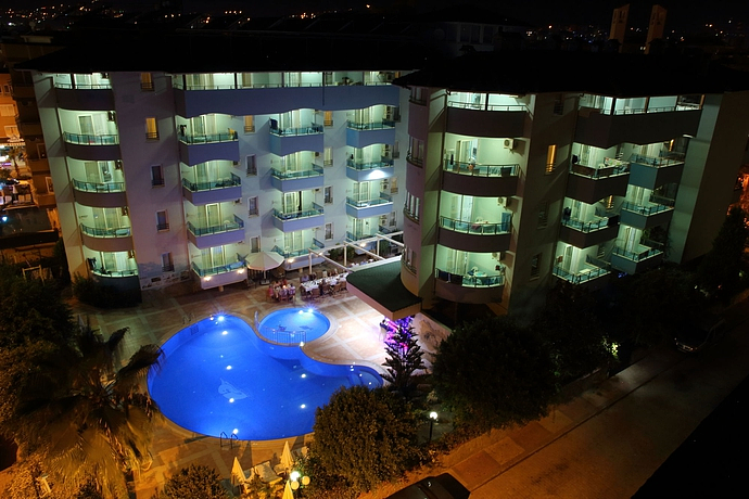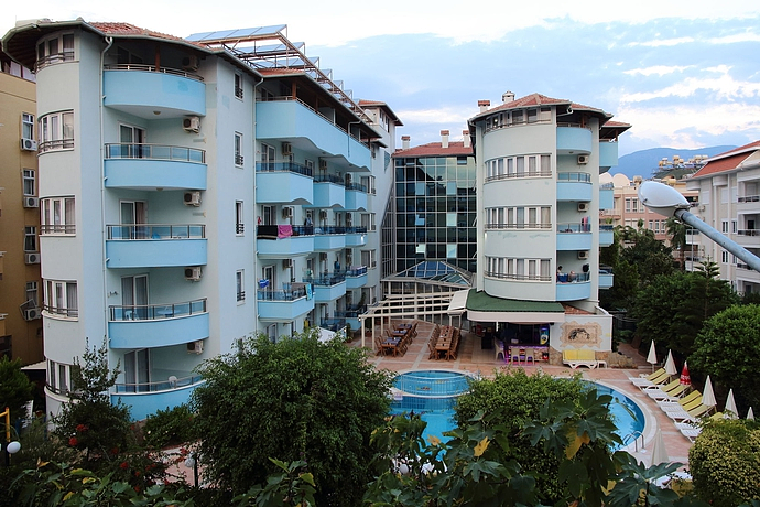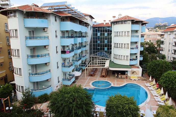 HOTEL: Este hotel cuenta con una piscina, hamacas y sombrillas. SITUACIÓN: Este establecimiento, está a 3 kilómetros del centro de la ciudad de Alanya. HABITACIÓN: Las habitaciones tienen cocina, balcón, sistema de aire acondicionado, televisión vía satélite, cocina con completo equipamiento y una sala de estar. INSTALACIONES: Se ofrece a los huéspedes una sauna, un gimnasio, una librería, baño turco, servicio de masajes, una recepción y conexión wifi sin abonar cargo adicional. OTRAS: Relacionado con la gastronomía los clientes pueden disfrutar de 2 restaurantes, 2 bares y servicio de habitaciones.