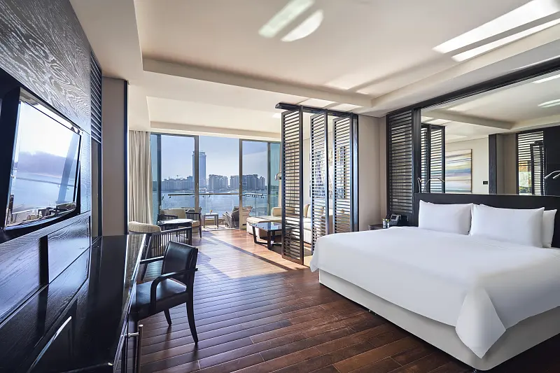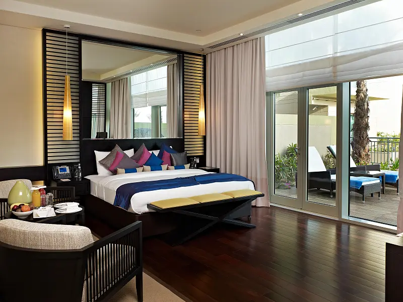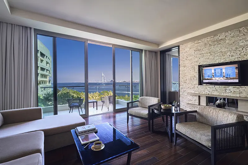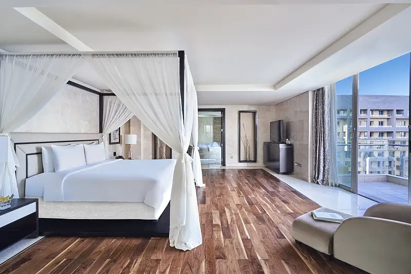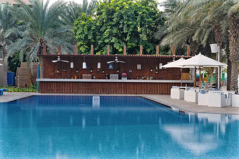 The hotel RIXOS THE PALM DUBAI HOTEL AND SUITES is located in the vicinity of a private beach. The old town is around 40 km away. The nearest shops you can reach within around 6 km, a supermarket is around 5 km away. There is a shuttle service between the hotel and the airport. The beach is patrolled by a lifeguard. Here, there are sun loungers, cushions and beach towels available. Cold drinks are served at the bar on the beach. The air-conditioned hotel has a 24h reception (check-in is possible around the clock), a lobby bar, Wi-Fi, a shop, a boutique, cash machine, a hairdresser, a jacuzzi, showers and changing rooms, a first aid kit as well as parking spaces. In the outdoor area you will find a seasonally heated pool (open all year), where sun loungers and pool towels are available for free. Furthermore, outside you can find a terrace. You can store your valuables in the safe, and your luggage in the hotel`s storage room. For your entertainment, the hotel offers a library/reading room and a disco. For very young guests, kid`s chairs can be provided. For the smallest children prams can be rented in the hotel. There is also a laundry and ironing service available at an additional cost to customers. For your comfort, in addition to the concierge service the hotel page will ensure you are looked after. If necessary, you can contact the medical centre. For conventions and other business meetings, the hotel offers a business centre as well as a conference area with scanner as well as overhead projector. If you want to explore the holiday region, you can use the car rental service close to the hotel. At the reception, tickets are offered for excursions in the area. For guests on their honeymoon, the hotel has special offers such as special honeymoon packages. In your hotel, a lot of focus is placed on sustainability. This includes among others a central room air-conditioning. Due to its barrier-free facilities , such as barrier-free entrances, wheelchair accessible rooms and a wheelchair accessible lift, the hotel is also suitable for wheelchair users. Catering As catering services the hotel offers all-inclusive, half board, half board plus and breakfast only. Breakfast is offered American, continental, from the buffet, à la carte or as brunch. Enjoy your lunch from the buffet. Dinner is also served as a buffet, as a set meal or à la carte. For the meals, there are a buffet restaurant with terrace (Italian, gluten-free and vegetarian dishes) and a 24h snackbar as well as the pool bar. For dinner, guests are asked to wear appropriate clothing in the restaurant. Distances