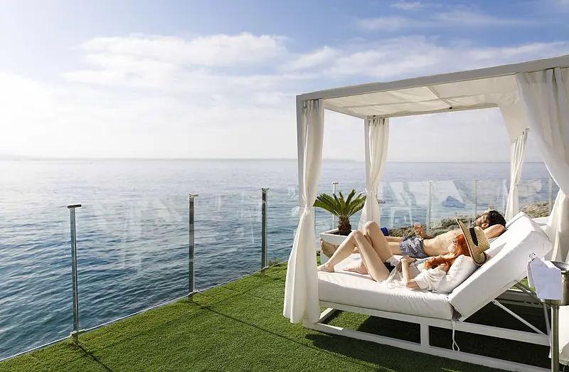 Let yourself be conquered by a 4 star resort in Illetas , a few minutes from the center of Palma, where you can live the most of your vacations every day. This hotel is few minutes from the famous crystal-clear coves and white sand of Ses Illetes, this complex stands out for its mostly renovated rooms with spectacular views of the Mediterranean Sea. Since 2018 we have Luxurious Suites completely renovated.Hotel with large garden areas, rest areas with direct access to the sea, relaxing pools, gym and a catering service based on high quality Mediterranean cuisine for all tastes. This hotel has always been a place chosen by couples who are looking for romantic enclaves to spend their honeymoons. Close to the renowned Bendinat golf course and a relative distance from the main golf courses of Palma and Calvi, the Hotel Roc Illetas is a renowned destination for lovers of golf. The exclusive Puerto Portals is only 5 km away.