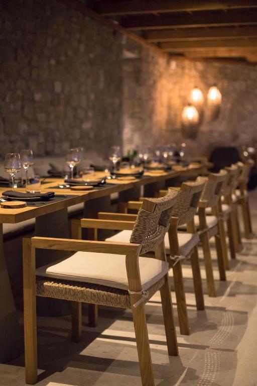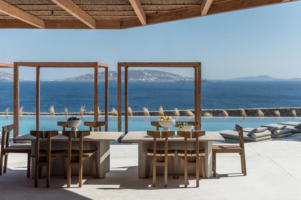 Camerele și suitele, decorate in nuanțe naturale și alb specific grecesc, dispun de balcoane sau terase private cu vedere spre mare sau grădină. Hotelul se mandrește cu piscina infinity care pare că se contopește cu marea, un spa boutique pentru momente de răsfăț și un restaurant gourmet care servește specialități mediteraneene.