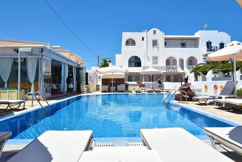 When you stay at Rodakas Hotel in Santorini, you'll be near the beach, within a 5-minute walk of Santorini Caldera and Caldera Beach. This hotel is 1.9 mi (3.1 km) from Red Beach and 2.5 mi (4.1 km) from White Beach.Take advantage of recreation opportunities such as an outdoor pool or take in the view from a terrace and a garden. Additional features at this hotel include complimentary wireless Internet access, concierge services, and a television in a common area. Getting to nearby attractions is a breeze with the area shuttle (surcharge).Featured amenities include complimentary wired Internet access, dry cleaning/laundry services, and luggage storage. For a surcharge, guests may use a roundtrip airport shuttle (available 24 hours) and a ferry terminal shuttle.Stop by the hotel's restaurant for lunch or dinner. Dining is also available at the coffee shop/café, and room service (during limited hours) is provided. Unwind at the end of the day with a drink at the bar/lounge or the poolside bar. Buffet breakfasts are available daily from 8 AM to 10:30 AM for a fee.Stay in one of 23 guestrooms featuring LED televisions. Rooms have private furnished balconies or patios. Complimentary wireless Internet access is available to keep you connected. Private bathrooms with showers feature complimentary toiletries and hair dryers.