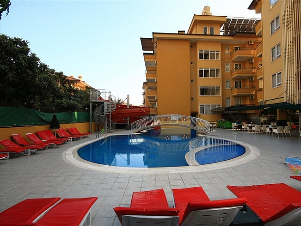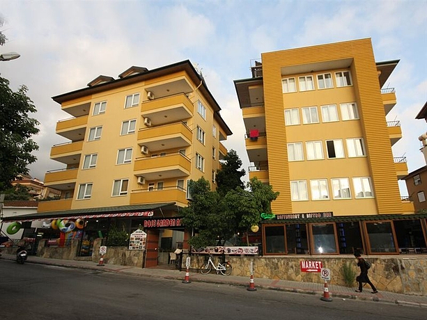 HOTEL: Este hotel cuenta con 2 edificios, una piscina con zona separada para niños, un restaurante, un bar, una recepción e internet sin cargo extra. SITUACIÓN: Este aparthotel, está en la periferia de Alanya. A 15 kilómetros está situado el centro urbano. A 17 km del establecimiento los clientes pueden encontrar la playa. Cercano al establecimiento hay una parada de transporte público. HABITACIÓN: Los apartamentos cuentan con una cocina, 2 camas y comedor. INSTALACIONES: Se ofrece un programa de ocio y entretenimiento por las noches y un bar deportivo. OBSERVACIONES: Preguntar por las condiciones del hotel.