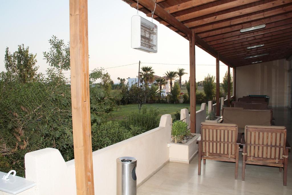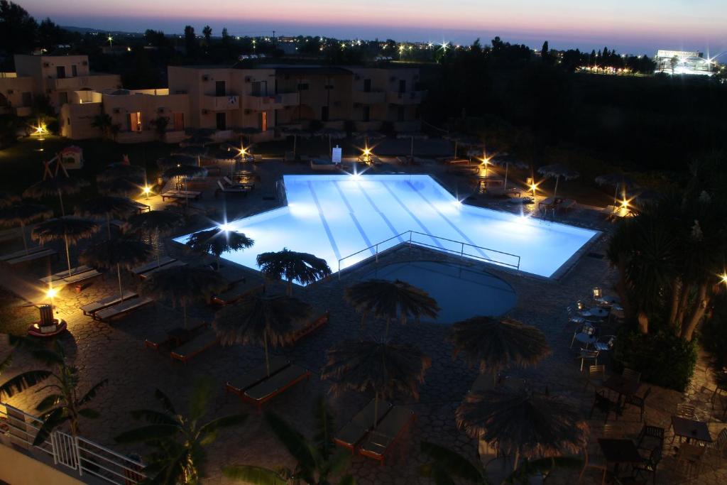 Toate camerele au aer condiționat și deschidere către un balcon privat cu vedere la Marea Egee, la munte, la piscină sau la grădină. Camerele au pat din fier forjat sau lemn, TV cu ecran de 21 inch și canale prin satelit, frigider si uscător de păr.