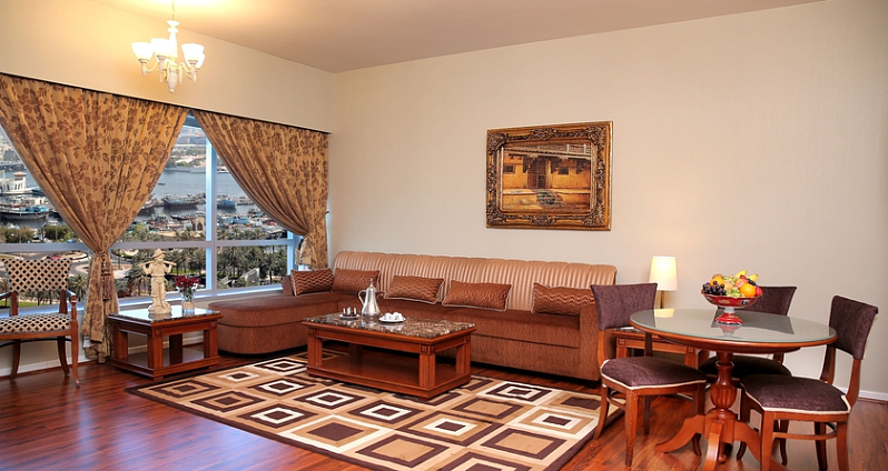 HOTEL: Este edificio con sistema climatizado, cuenta con 112 suites. Los clientes pueden disponer de una caja fuerte, servicio de cambio de moneda, ascensor, una cafetería, salón de peluquería, 3 restaurantes y una cafetería. Además cuenta con wifi, servicio de habitaciones, servicio de lavandería y parking. SITUACIÓN: Este hotel está en Deira, en las cercanías los clientes disponen de lugares de interés. A 10 minutos los clientes encontrarán el aeropuerto de Dubai. HABITACIÓN: Está formado por suites con secador de pelo, cuarto de baño, televisión satélite o por cable, conexión a internet y minibar. Además tienen set de plancha, caja de seguridad y sistema de aire acondicionado central. INSTALACIONES: Los clientes tienen disponible una piscina, una piscina para niños y un área deportiva. En las cercanías hay un campo de golf.