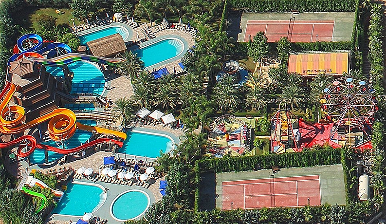 HOTEL: Este hotel con climatización, cuenta con 568 habitaciones y 7 plantas. En la entrada se dispone de un vestíbulo con recepción, servicio de salida, caja de seguridad, servicio de cambio de moneda, un guardarropa, ascensor y una peluquería. Los clientes pueden disponer de un auditorio, sala de juegos, un salón de televisión, un patio de juegos para los mas pequeños, club infantil, una cafetería, un bar, una discoteca y un restaurante. Abonando un cargo extra dispone de wifi y servicio de lavandería. SITUACIÓN: Este hotel de playa, está situado en Side, a 5 kilómetros está situado Colakli, este hotel, está a 50 kilómetros de Antalya, se sitúa a una distancia de 48 kilómetros del aeropuerto de Antalya. HABITACIÓN: Las habitaciones tienen cerradura electrónica, aire acondicionado, calefacción central, televisión, secador de pelo, caja de seguridad, minibar, un baño con bañera, una ducha, aseo, teléfono de línea directa, cama doble, espejo, radio, balcón y cunas bajo petición. INSTALACIONES: Se proporcionan un programa de ocio y entretenimiento, música en vivo, discoteca para los niños, parque infantil, un parque acuático y un parque de atracciones. Los clientes tienen a su disposición 2 piscinas, piscina cubierta según la temporada, una piscina con una zona para niños, bar donde tomar un aperitivo, terraza, tumbonas, sombrillas, actividades deportivas, un gimnasio, un jacuzzi, una sauna y baño de vapor. Con cargo extra puede disfrutar de tratamientos de spa y servicio de masajes. En la playa puede encontrar tumbonas y sombrillas. Se ofrece toallas de playa mediante un abono extra. MÉTODOS DE PAGO: Se admite Mastercard y Visa.