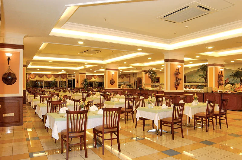 Hotelul dispune de 142 camere standard, 150 family room, restaurant principal, restaurant a la carte, snack bar, bar la piscina, bar la plaja, lobby bar, disco bar, piscina exterioara, si interioara, aqua park, sectiune pentru copii, sala tv, mini club, teren tenis, teren baschet, fdart, animatie, centru spa, coafor, internet, baie turceasca, sauna, jacuzzi, centru fitness.