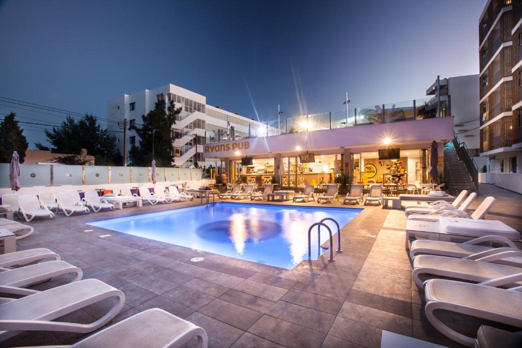 Ryans Ibiza Apartments se află la 150 de metri de plaja Playa Figueretas și la 20 de minute de mers pe jos de centrul orașului Ibiza. Oferă o piscină in aer liber și un Ryans Pub.