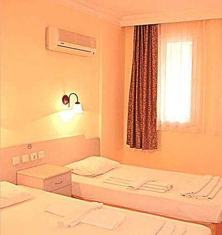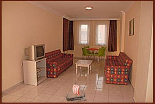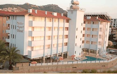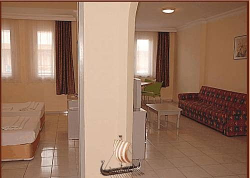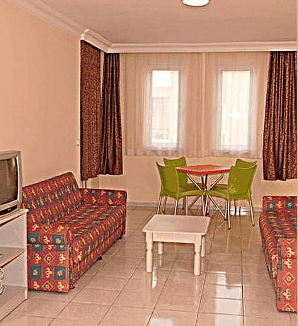 HOTEL: Este aparthotel cuenta con 35 habitaciones, un restaurante, un bar, un vestíbulo con recepción, servicio de salida, sistema de aire acondicionado, caja de seguridad y cambio de divisa. Se ofrece a los huéspedes ascensor, salón para ver la televisión, internet y servicio de habitaciones de pago directo. SITUACIÓN: Está situado a unos 5 minutos de una playa. A 1 km podrá encontrar el corazón de la ciudad donde encontrará tiendas y restaurantes. Frente al establecimiento los clientes disponen de una parada de transporte público. A 125 kilómetros del establecimiento los clientes pueden encontrar el aeropuerto de Antalya. HABITACIÓN: Cuentan con cocina, sistema de aire acondicionado, caja de seguridad con cargo extra, televisión satélite, cuarto de baño con ducha, secador de pelo, nevera, cama doble y balcón o terraza. INSTALACIONES: Los clientes tienen a su disposición una piscina con una zona para niños y un bar al aire libre. Puede realizar actividades como ping pong y billar mediante un abono extra. Se ofrece a los huéspedes tumbonas. COMIDAS: En lo referente a lo gastronómico el establecimiento dispone de desayuno continental y almuerzo y cena de menú o a la carta.