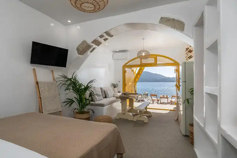 Our brand new property can make you feel the experience to live just 2 metres away from the sea in a unique fisherman village, a landmark of Milos island. The property is fully eqquiped with anything that you maybe will need to enjoy your vacations. From the property you can enjoy a unique sunset picture and its one of the best on the island!