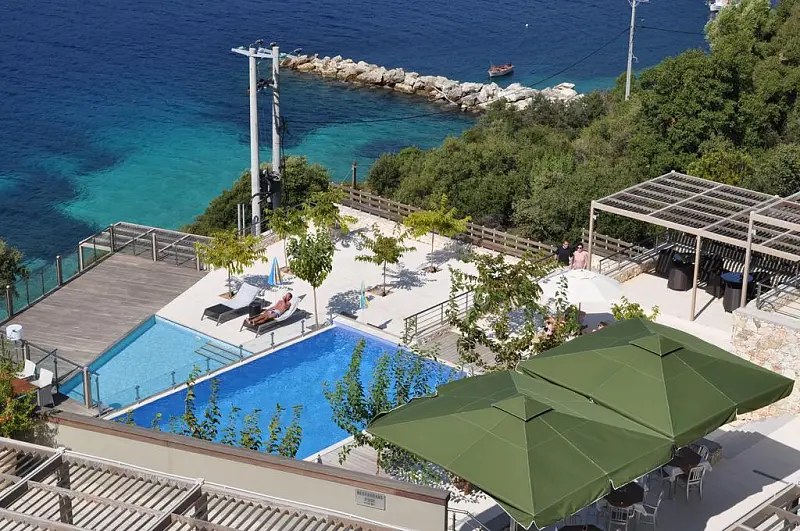 Hotelul este construit recent in zona Poros, la 11 km de orasul cosmopolitan Nydri, 28 de km de Lefko (orasul principal al insulei Lefkada). Accesul catre hotel este facilitat de faptul ca se afla pe singura insula conectata cu partea continentala a Greciei, printr-un pod mobil.