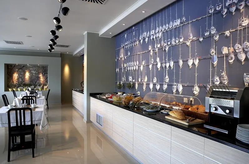 Hotelul are un restaurant A la carte, un bar la piscina si un bar pe plaja.