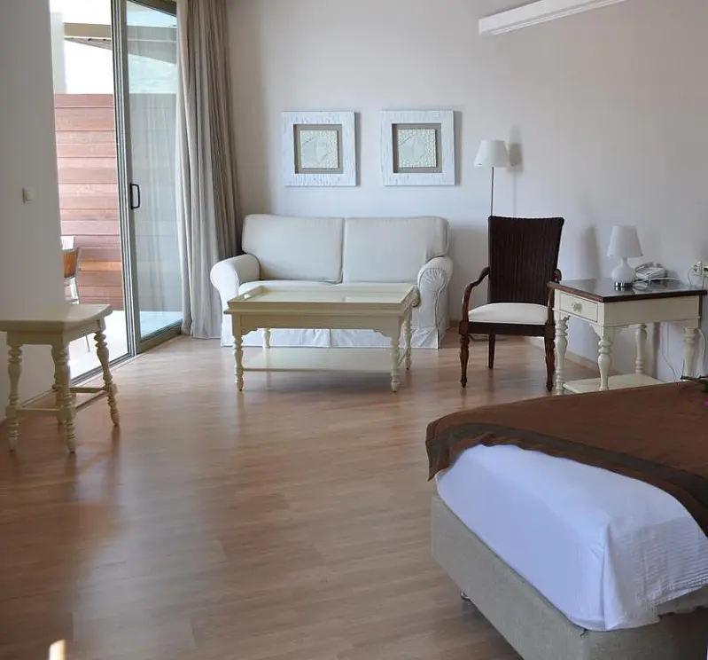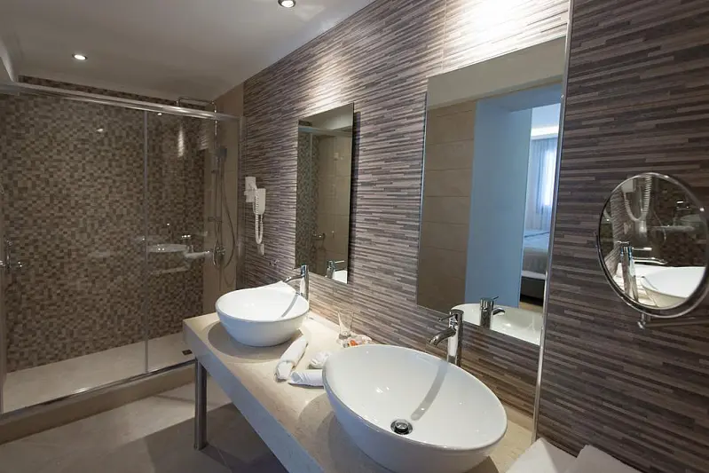 Camere Deluxe au 40 mp si au balcon sau terasa cu vedere la mare. Camerele Family sunt formate din 2 camere duble despartite de o usa.