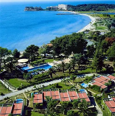 Hotelul se afla la 8 minute de mers pe jos fata de plaja si este situat intr-un golf verde de pe bratul Kassandra al peninsulei Halkidiki. Hotelul cu plaja privata este recomandat familiilor cu copii, cuplurilor, amatorilor de lux si relaxare activa.