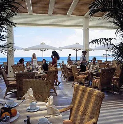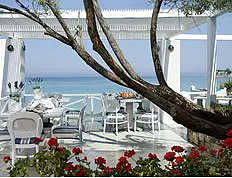 Hotelul ofera mic dejun si cina bufet. Optional, se poate rezerva si pranzul bufet. Hotelul ofera alternative atat pentru cei care doresc o cina intima, cat si pentru cei care vor sa se distreze cu familia sau prietenii: taverna greceasca (13:00-22:30), restaurant A la carte pe plaja (8:30-10:30, 12:00-17:00, 19:00-22:30), restaurant bufet (7:30-11:00, 13:00-14:30, 18:30-21:30), 2 baruri in hotel (10:00-01:00), bar la piscina (10:00-18:00) care serveste si gustari.