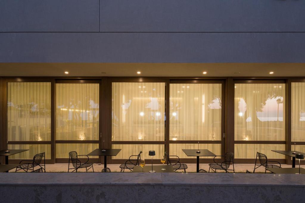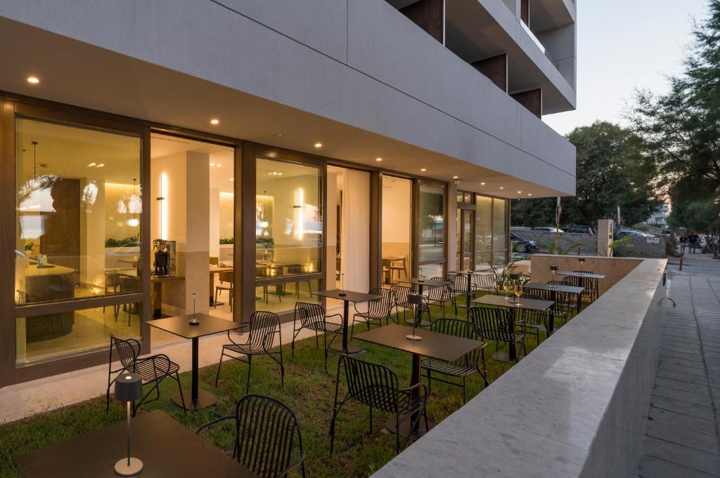 Experiență culinară: Restaurantul modern servește preparate din bucătăria grecească, mediteraneană, pizza și europeană, cu opțiuni vegetariene, vegane, fără gluten și fără lactate. Micul dejun este disponibil sub formă de bufet continental.