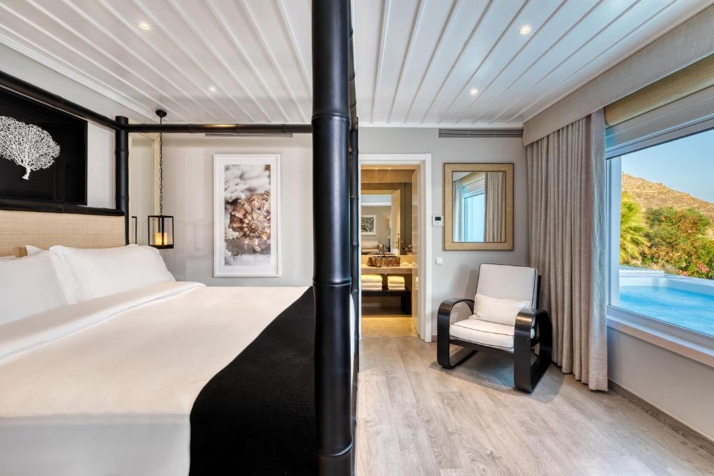 Amplasat pe o peninsulă retrasă, cu vedere la Marea Egee, la 4 km de orașul Mykonos, Santa Marina, A Luxury Collection Resort, Mykonos are 2 restaurante diferite, un bar pe plaja sa privată cu nisip și un centru spa complet echipat.