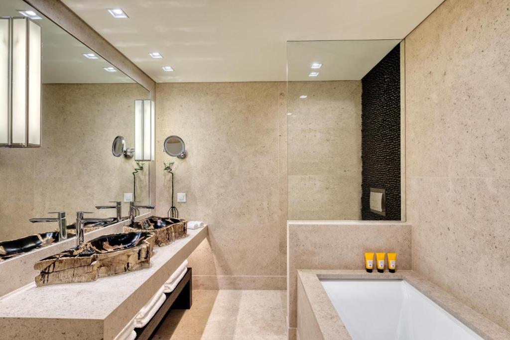 Mykonos Social by Jason Atherton oferă preparate din bucătăria mediteraneană, cu vedere la mare. Buddha Barul in stil asiatic oferă fructe de mare gourmet și cocktailuri pregătite de un mixologist renumit.