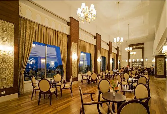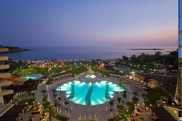 Complexul este renovat in 2008, dispune de 333 camere, din care 307 camere standard, 17 family connection, 6 suite si 3 honeymoon suite, piscina exterioara,interioara, piscina pentru copii, aquapark, amfiteatru, teren de tenis, sala tv, discoteca, animatie, 1 restaurant principal, 2 restaurante a la carte, 5 baruri, baie turceasca, sauna, masaj,coafor, jacuzzi, solar, dart, doctor, SPA, tenis de masa, baschet, volei, sportui nautice, biliard, internet, seif.