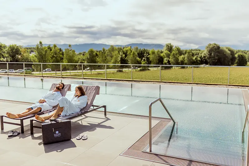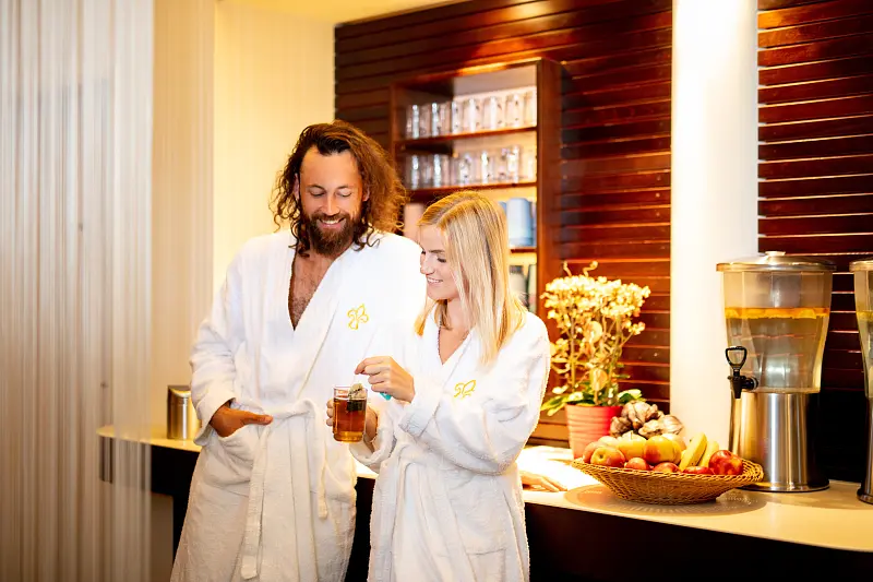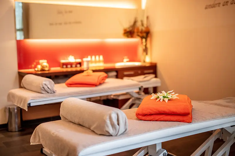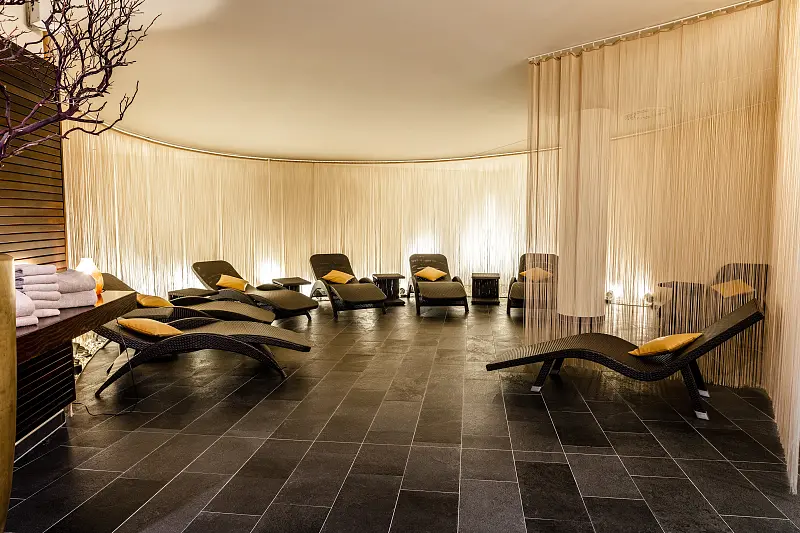size wellness area 1600 m², swimming pool area: children of 0 years. only in the company of an adult - free of charge, spa area: children not allowed - free of charge, steam bath, sauna, finish sauna, infrared cabin, tepidarium, relax room, nudity area, massage - on request, optional payable in resort, garden, lawn, deck chair - free of charge