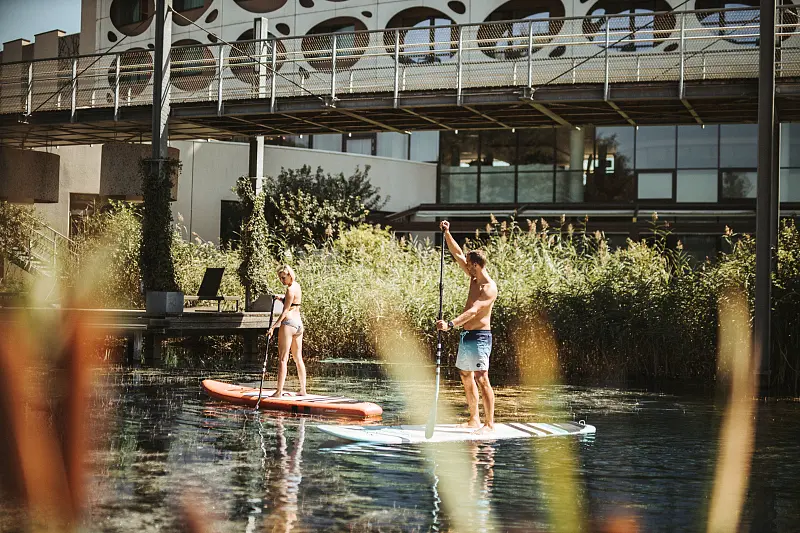 The Seepark Resort has a total of 142 rooms and suites in a modern design. On 1,600 m², the Move & Relax area offers an indoor and outdoor pool, sauna, steam bath, infrared cabin, fog ice grotto, sun terrace, massages and cosmetic treatments. If you feel like exercise, simply use the fitness room or put on your running shoes and explore the area around the southern shore and Kreuzbergl. In the Laguna restaurant you will be spoiled with regional delicacies and creative dishes. The hotel's 3,000 m² park invites you to stroll and linger.