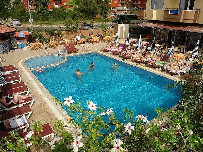 This 40-room beach hotel offers comfortable accommodation opposite the beach and is located 4km east of Alanya. In addition to a lobby area with 24-hour reception and check-out services, facilities available to guests at this establishment include currency exchange and lift access, as well as a bar, TV lounge and restaurant and free WLAN Internet access in the lobby. Occasional evening entertainment is provided.