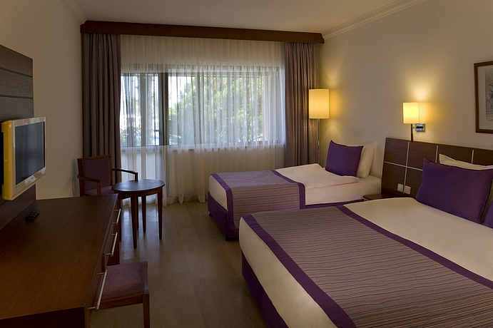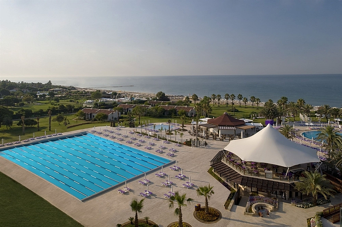 HOTEL: Este hotel ideal para el turismo de playa, es ideal para unas vacaciones en familia y dispone de 403 habitaciones. Los clientes tienen a su disposición un vestíbulo, una recepción, caja de seguridad, cambio de divisa, un guardarropa, ascensor y kiosko. Los clientes de este establecimiento también pueden encontrar una peluquería, teatro, 3 restaurantes, 3 bares, una discoteca, una sala de juegos y un salón donde podrá ver la televisión. Se ofrece wifi, servicio de habitaciones y servicio de lavandería con cargo adicional. Además tiene un miniclub, área infantil para que los niños jueguen y un parking. SITUACIÓN: Está en la playa de Belek. A 40 km se dispone de Antalya, cerca del establecimiento hay una estación de autobuses. A 4 kilómetros del establecimiento los clientes pueden encontrar tiendas. A 30 kilómetros está situado el aeropuerto. HABITACIÓN: Los clientes tienen a su disposición habitaciones renovadas con bañera y secador de pelo. Además tienen televisión vía satélite, minibar, teléfono y aire acondicionado. Puede encontrar balcón, internet, aire acondicionado central, calefacción central y caja fuerte. INSTALACIONES: Los clientes tienen disponible 2 piscinas con sección para los niños pequeños, chiringuito, tumbonas y sombrillas. Puede realizar actividades como aeróbic en el agua. Se ofrece bañera de hidromasaje, una sauna, un solarium y un gimnasio. También cuenta con tratamientos de spa, servicio de masajes, una pista de tenis, ping pong, volley playa, jugar al basket, tiro con arco, jugar a la petanca, dardos, aerobic y montar en bicicleta con cargo extra. Mediante un cargo extra se puede deportes acuáticos, montar en moto acuática, esquí acuático, motos de agua y barco torpedo. Se realizan actividades como surf, windsurf, vela, catamarán mediante un pago adicional, piragüismo y barca a pedales. Mediante un cargo extra se puede jugar al billar y jugar al mini golf. Se ofrece programa de animación. A 500 metros los clientes disponen de un campo de golf. MÉTODOS DE PAGO: Se admite Mastercard y Visa. OTRAS: En lo referente a los gastronómico el establecimiento ofrece desayuno estilo buffet continental, almuerzo estilo buffet y cena donde podrá elegir entre buffet o a la carta.