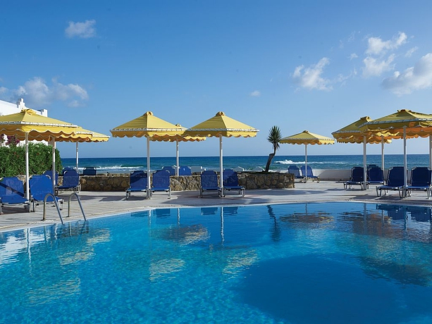 HOTEL: Este hotel reformado en 2004, cuenta con un edificio principal con 3 plantas, 272 habitaciones dobles y 10 suites. Los clientes disponen de un vestíbulo con ascensor, pequeño supermercado, recepción, tienda para comprar recuerdos, salas de estar, una taberna, una boutique, una joyería, una peluquería, una sala de juegos, un salón de televisión, un restaurante con climatización con terraza, sillas para los niños con área de no fumadores. Se ofrece a los huéspedes un parking, mini club, un patio de juegos para los mas pequeños, servicio de lavandería y servicio de niñera. SITUACIÓN: Este hotel, está situado en una zona tranquila. Este hotel, está enfrente de la playa. Frente al establecimiento hay una parada de transporte público. A 35 km se dispone del centro de la ciudad de Chersonissos donde encontrará tiendas, comercios y áreas de ocio. HABITACIÓN: Las habitaciones cómodas cuentan con baño con secador de pelo, teléfono de línea directa, televisión satélite con canales internacionales, radio y equipo de música. Además tienen minibar, aire acondicionado, calefacción individual, caja de seguridad con cargo extra y balcón o terraza. INSTALACIONES: En la zona exterior puede encontrar un jardín, 3 piscinas con zona de baño infantil, una terraza para tomar el sol, sombrillas y tumbonas. Se realizan actividades como banana boat, barca a pedales, montar en moto acuática, aerobic, esquí acuático, windsurf, vela, tenis con cargo extra, ping pong, volley playa y billar. Algunos de estos servicios con cargo extra. Se ofrece a los huéspedes programa de ocio y entretenimiento dependiendo de la temporada, folclore, noches temáticas y música en vivo. COMIDAS: En cuanto a la gastronomía el establecimiento cuenta con un restaurante que sirve comidas dispuestas en modo buffet. Puede reservar en media pensión,pensión completa o servicio de todo incluido. MÉTODOS DE PAGO: Se admite American Express, Visa, Mastercard y Diners Club. OBSERVACIONES: Se permite pagar con American Express, Visa, Mastercard y Diners Club.