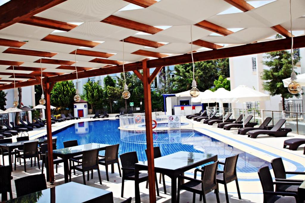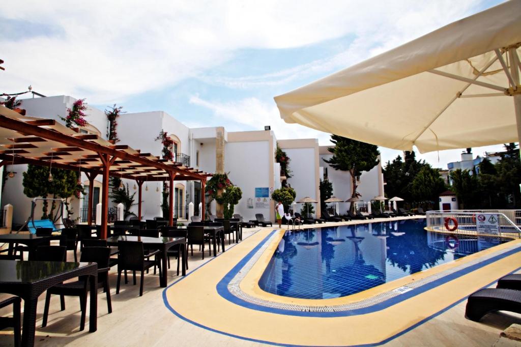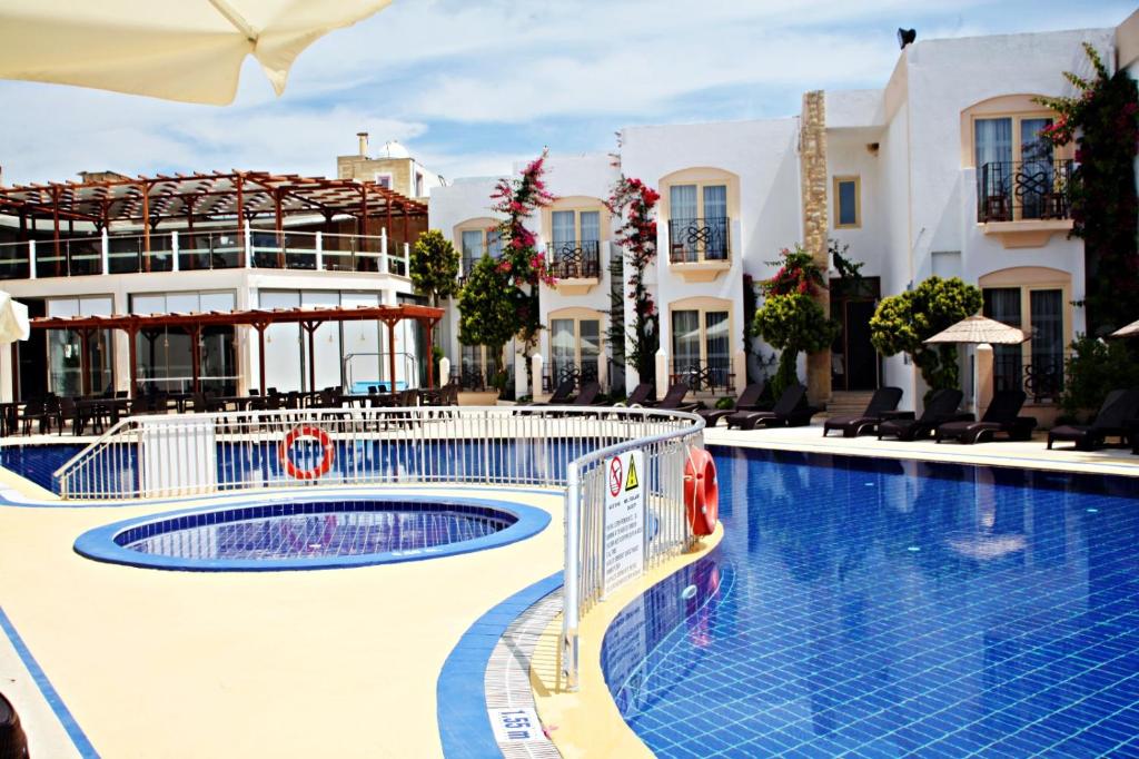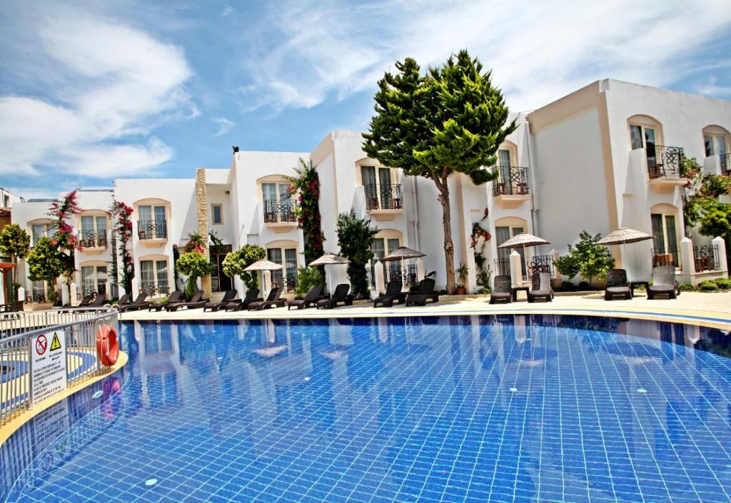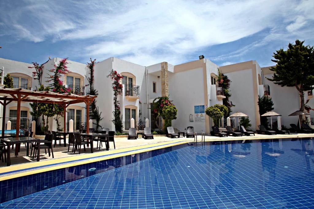 Featuring a seasonal outdoor pool and a sun terrace, Serpina Hotel offers accommodation in Gumbet, 2.7 km from Bodrum town centre. Free private parking is available on site.
