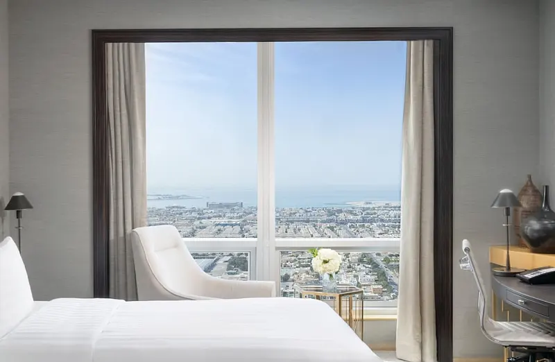 <strong>Property Location</strong><p>With a stay at Shangri-La Dubai, you'll be centrally located in Dubai, within a 5-minute drive of City Walk and Dubai Aquarium & Underwater Zoo. This family-friendly hotel is 2.2 mi (3.6 km) from Dubai Mall and 2.4 mi (3.8 km) from Burj Khalifa.<br> Distances are displayed to the nearest 0.1 mile and kilometer. <br /> <p>City Walk - 1 km / 0.6 mi <br /> Coca-Cola Arena - 2 km / 1.2 mi <br /> Museum of the Future - 2 km / 1.2 mi <br /> Dubai Aquarium & Underwater Zoo - 2.5 km / 1.6 mi <br /> Dubai Mall - 2.7 km / 1.6 mi <br /> Dubai Ice Rink - 2.7 km / 1.7 mi <br /> Burj Khalifa - 2.8 km / 1.7 mi <br /> Emaar Square - 2.9 km / 1.8 mi <br /> Mercato Shopping Mall - 3 km / 1.9 mi <br /> KidZania - 3.1 km / 1.9 mi <br /> Dubai Opera - 3.2 km / 2 mi <br /> Dubai World Trade Centre - 3.3 km / 2 mi <br /> Dubai Fountain - 3.5 km / 2.2 mi <br /> Jumaira Plaza - 3.6 km / 2.2 mi <br /> Dubai International Convention and Exhibition Centre - 3.6 km / 2.3 mi <br /> </p><p>The nearest airports are:<br />Dubai Intl. Airport (DXB) - 13.2 km / 8.2 mi<br /> Sharjah (SHJ-Sharjah Intl.) - 41.6 km / 25.8 mi<br /> Al Maktoum Intl. Airport (DWC) - 58 km / 36.1 mi<br /> </p><p>The preferred airport for Shangri-La Dubai is Dubai Intl. Airport (DXB). </p><br> <strong>Rooms</strong><p>Make yourself at home in one of the 302 air-conditioned rooms featuring minibars and LED televisions. Complimentary wired and wireless internet access keeps you connected, and satellite programming provides entertainment. Private bathrooms with separate bathtubs and showers feature deep soaking bathtubs and complimentary toiletries. Conveniences include safes and desks, as well as phones with free local calls.<p> <strong>Dining</strong><p>Satisfy your appetite for lunch or dinner at Dunes Cafe, a restaurant which specializes in international cuisine, or stay in and take advantage of the 24-hour room service. Relax with your favorite drink at the bar/lounge or the poolside bar. Buffet breakfasts are available daily for a fee.<p> <strong>Business, Other Amenities</strong> <p>Featured amenities include complimentary wired internet access, a business center, and complimentary newspapers in the lobby. A roundtrip airport shuttle is provided for a surcharge (available 24 hours), and free valet parking is available onsite.<p>