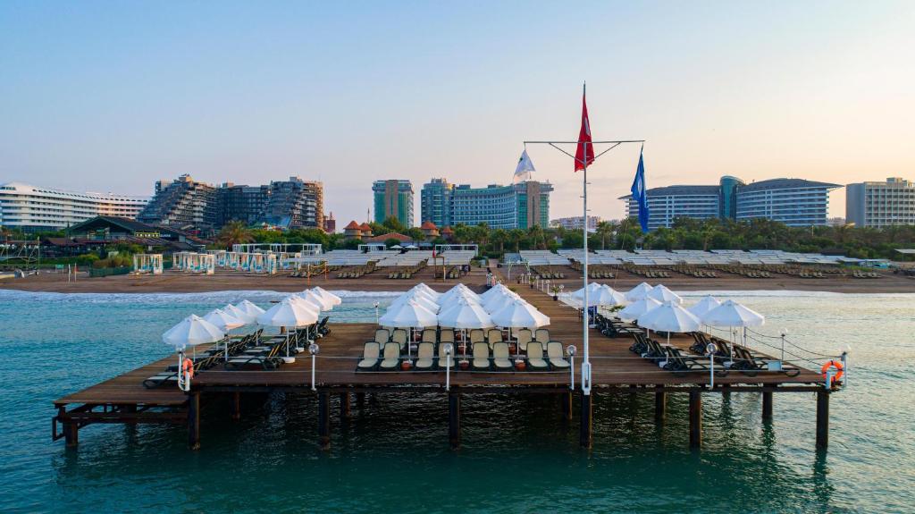 Această stațiune luxoasă este situată pe malul mării și oferă o plajă privată cu nisip, cu doc. Proprietatea include piscine in aer liber, tobogane cu apă, saună și baie turcească. WiFi gratuit este disponibil in intreaga proprietate.