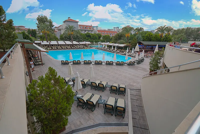 Dispune de un restaurant principal, 2 restaurante a la carte (unul cu specific pescaresc si unul turcesc), 1 restaurant la plaja, 4 baruri (lobby bar, bar la plaj, bar la piscina, pub si disco bar). Turistii hotelului pot folosi piscinele exterioare (una cu activitati de animatie si una de relaxare), piscina exterioara, piscina pentru copii si aqua park-ul. Printre facilitatile hotelului se numara si centru fitness, tenis de masa, volei pe plaja, sporturi nautice, mini club, centru SPA, sauna, masaj