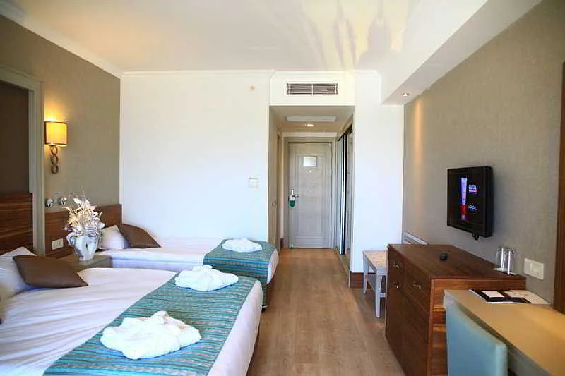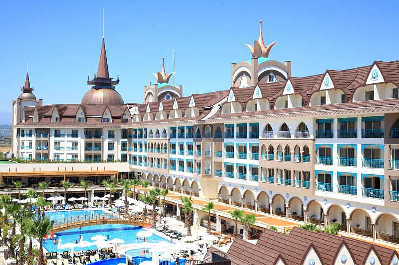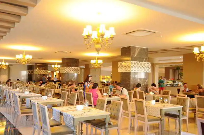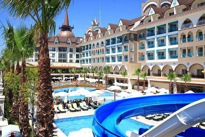 The hotel is located in the Evrenseki region. The beach and the Mediterranean are 400 m away. Public transport links are within a 10-minute walk. Antalya Airport is approximately 57 km away. |This modern hotel offers a range of facilities which include restaurants, shops and a hairdressers saloon. Guests can make use of the games room, TV lounge, café, bar and disco. A kids club is also available, and business travellers can take advantage of the conference facilities. The hotel offers wireless Internet access and a car park. All rooms feature an en- suite bathroom, satellite/cable TV and Internet access, air conditioning and tea/coffee making facilities. The hotel has a light activities programme and offers a SPA centre, sauna, steam room and Turkish bath. In addition, there are 2 pools, one of which is heated.
