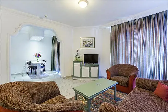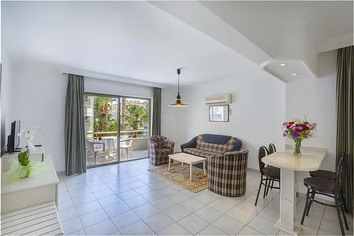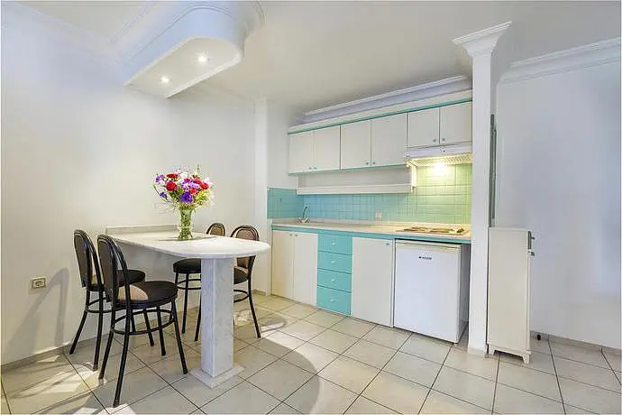 HOTEL: Este aparthotel ideal para unas vacaciones en familia y cuenta con 60 lujosos apartamentos de uno o dos dormitorios. Los clientes pueden disponer de un vestíbulo con recepción, caja de seguridad, servicio de cambio de moneda, ascensor, una cafetería, un bar, un salón de televisión y un restaurante. También ofrece a sus clientes servicio de lavandería, plancha y tintoreria. SITUACIÓN: Puede encontrar a 200 metros tiendas. A 250 metros pueden disponer de una playa. Está situado a unos 500 metros del centro de la ciudad de Alanya. A 126 kilómetros tiene disponible el aeropuerto de Antalya. HABITACIÓN: Disponen de baño con ducha, secador de pelo, teléfono de línea directa, televisión satélite o por cable, cocina, tetera y cafetera. También cuentan con cama doble, sistema de aire acondicionado individual, balcón y caja de seguridad. INSTALACIONES: Los clientes tienen disponible 2 piscinas, una piscina de niños, 2 bares de piscina y un bar al aire libre. Puede jugar al billar con cargo adicional y tenis. También ofrece sala de juegos y un parque infantil. MÉTODOS DE PAGO: Se acepta Mastercard y Visa. OTRAS: Relacionado con la gastronomía los clientes pueden disfrutar de un restaurante que sirve comidas a la carta con terraza y desayuno y cena estilo buffet.